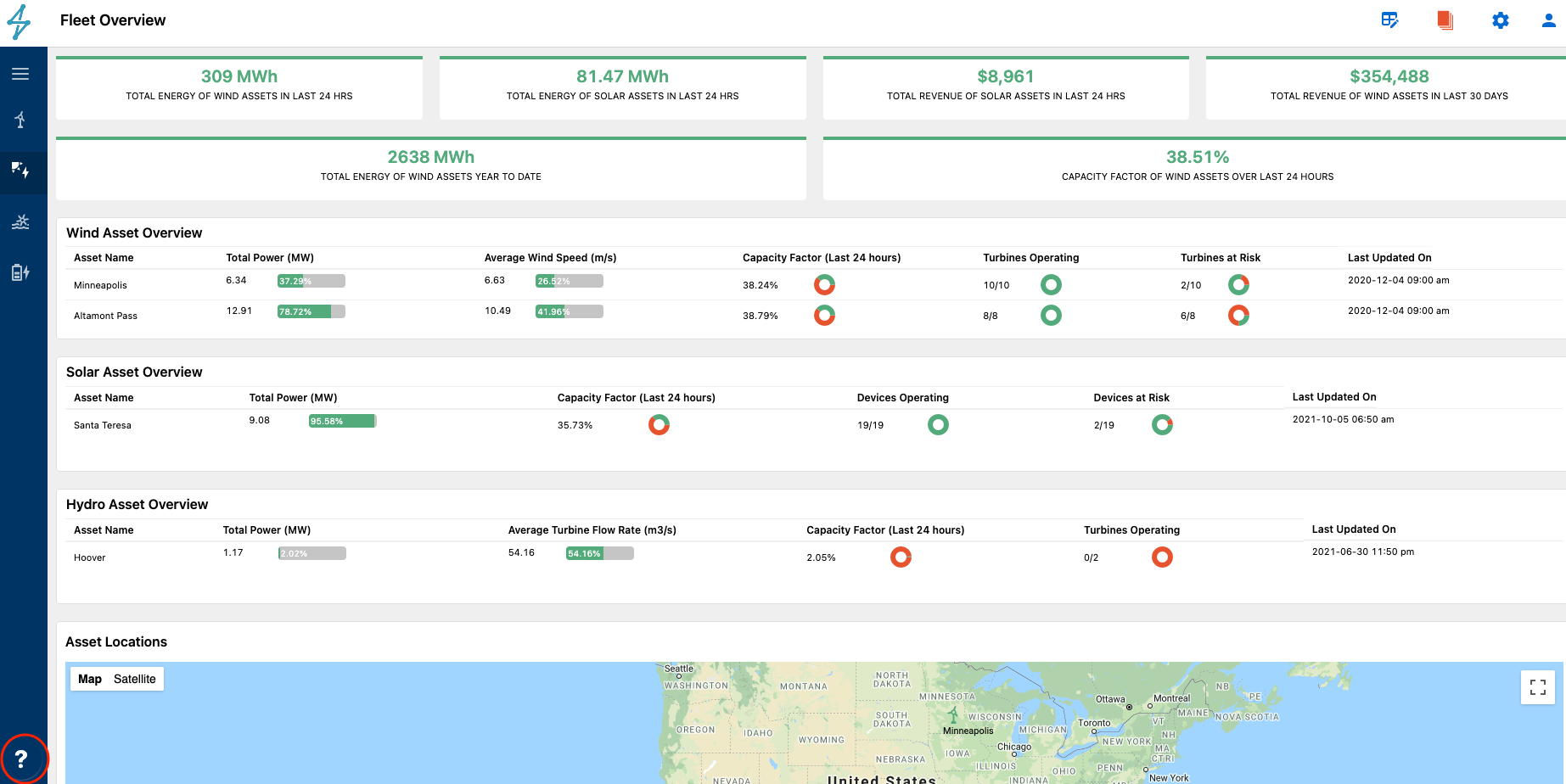 If users encounter any problems or have any questions with SparkCognition's Renewables Suite they can submit a help desk ticket via the question mark icon on the bottom left of the page.
