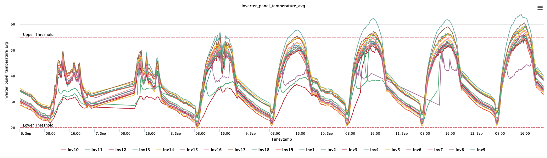 Below is a plot of panel temperatures over a specified time range with specified upper and lower thresholds.